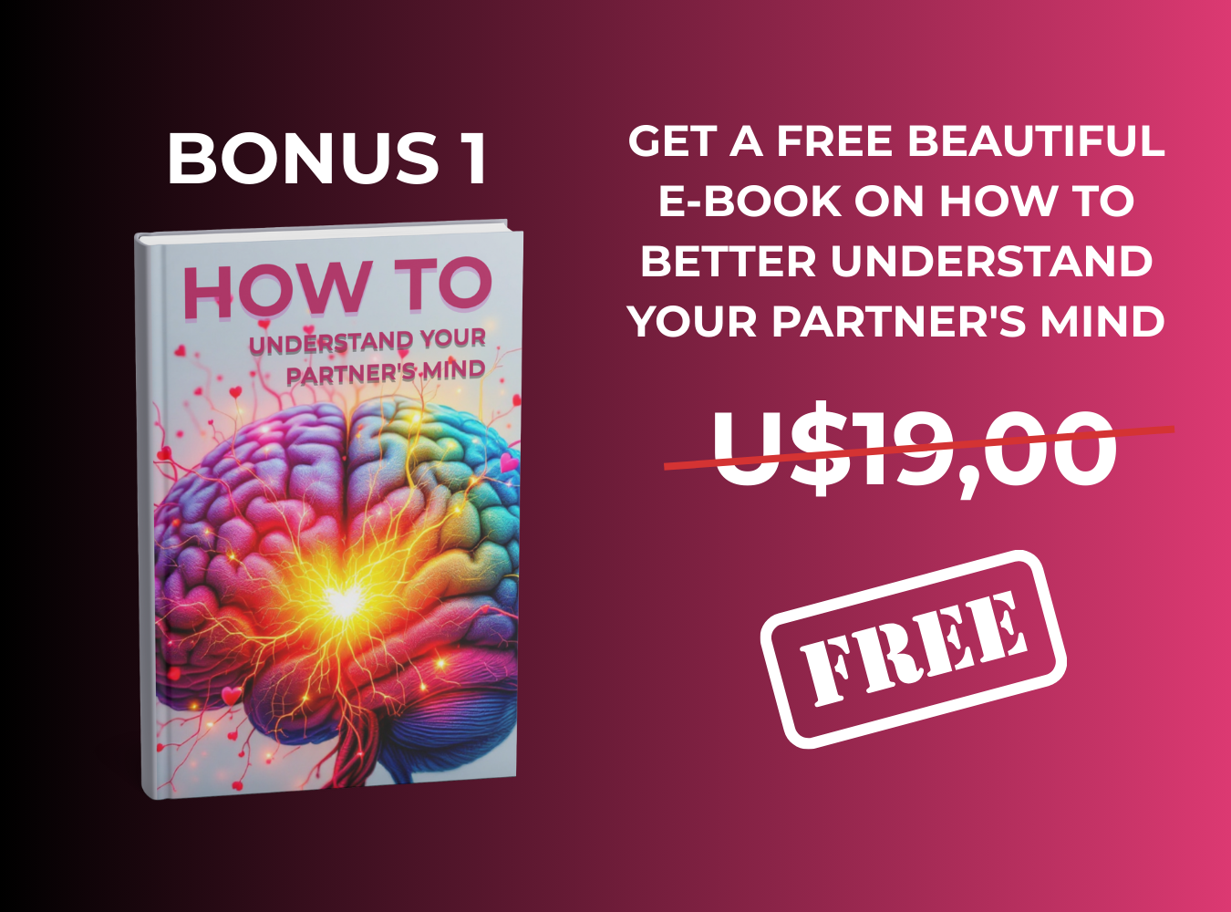 In addition, you will also receive 3 EXCLUSIVE FREE BONUSES, which will help you better understand your relationship and strengthen your self-esteem.